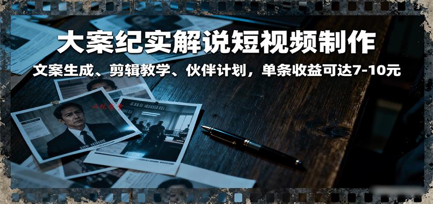 AI大案纪实短视频制作课是专为创作者设计的零基础变现课程,通过AI文案生成+剪映实操+伙伴计划内邀三大核心模块,实现单条视频制作1-2小时,伙伴计划收益7-10元/条,新号快速起量,月收益3000+的轻资产变现模式。
