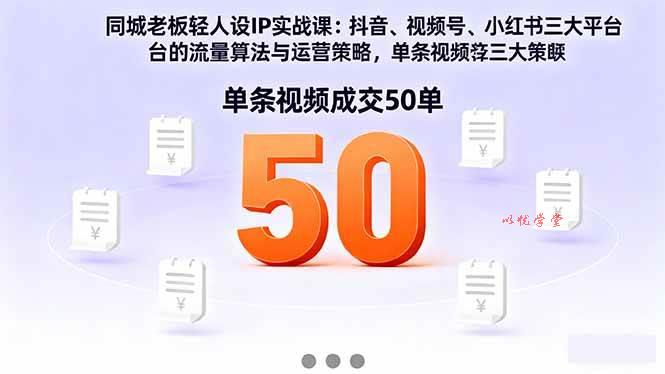 这是一门专为实体老板打造的短视频轻人设IP实战课程,系统讲解抖音、视频号、小红书三大平台的流量算法与运营策略,内容涵盖老板IP定位、爆款脚本创作、拍摄剪辑技巧、内容运营及AI创作等核心模块,通过人设打造实现同城获客与成交转化,帮助实体商家低成本高效获取客户。