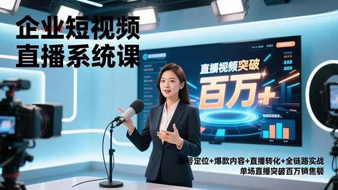 本课程为企业短视频运营与直播带货系统性实战课程,旨在帮助企业主及运营团队从零开始,系统掌握短视频引流与直播变现的全链路。课程内容涵盖企业转型战略、账号定位、蓝V与IP打造、爆款内容策划、拍摄剪辑技巧、直播间冷启动、流量获取、主播培养及成交转化策略,通过解析成功案例和拆解底层逻辑,提供从内容创作到销售转化的完整解决方案。
