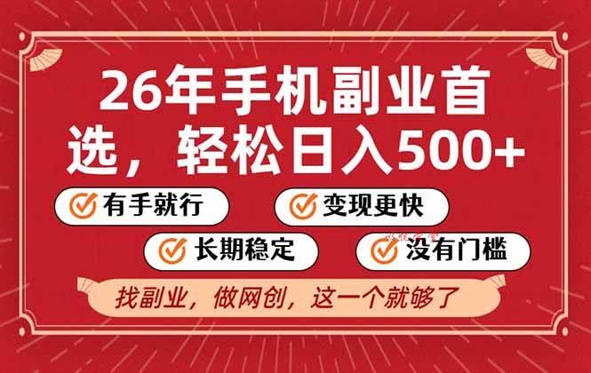 这个项目可以说是副业项目的首选,没有什么门槛可言,轻松日入500+,而且项目已经运行三年多了,尽管运行了这么长时间,这个项目依旧非常暴利,足以说明他的地位,而且只需要一部手机就可以操作,确实是天花板级别的项目,废话不多说,大家赶紧去实操,最后祝愿大家2026年,一路长虹!