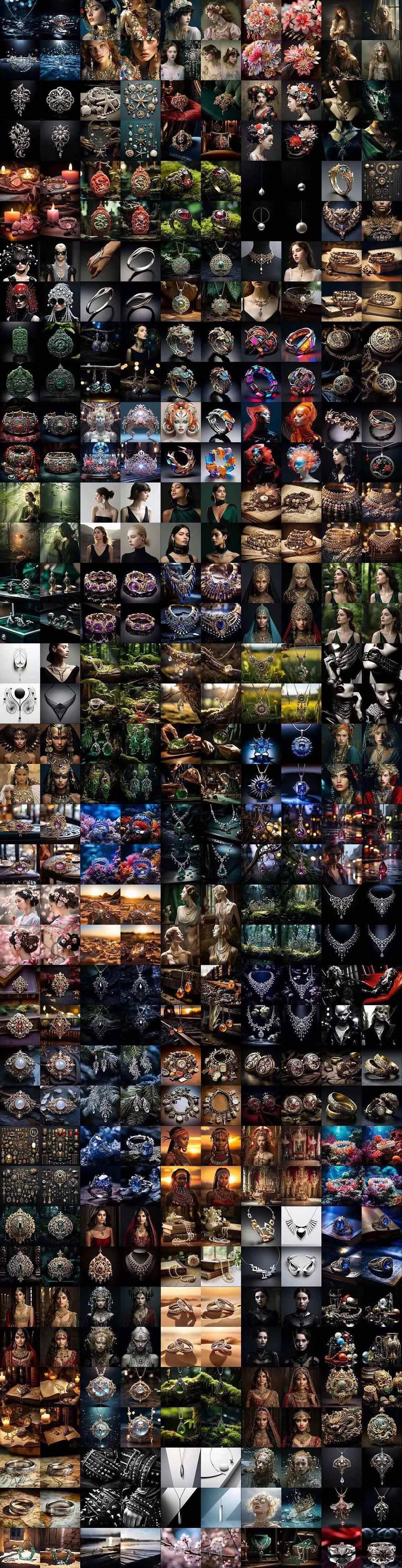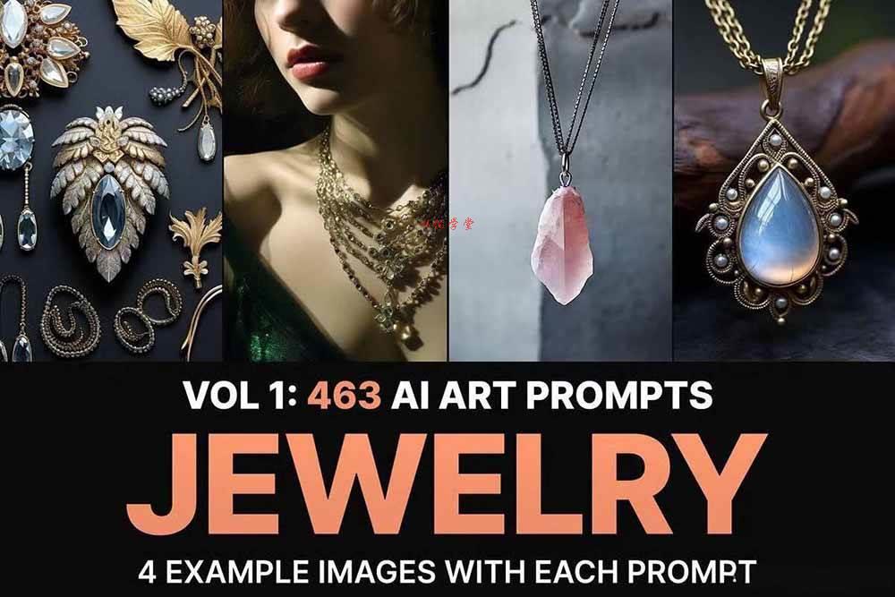 非常适合珠宝设计师、平面设计师以及任何希望用AI创作美丽珠宝艺术品的人。每个提示都经过精心设计,旨在从复古到现代奢侈品的各种珠宝风格中呈现专业品质的效果。